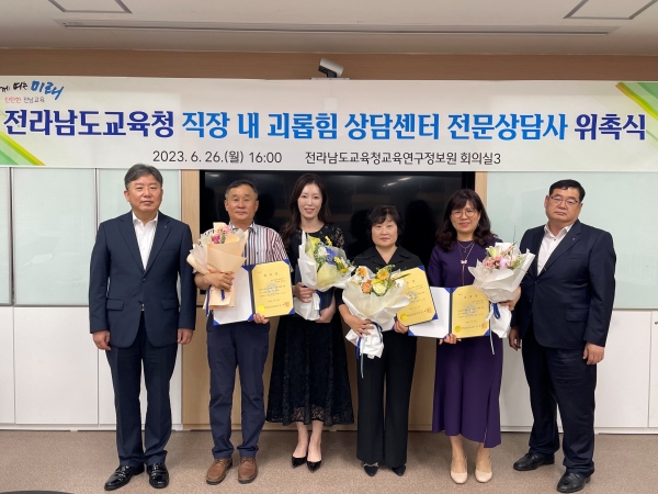 도교육청은 지난 26일 전남도교육청교육연구정보원에서 직장 내 괴롭힘 및 갑질 피해자 보호와 치료를 위해 전문 심리상담사 4명을 위촉했다.