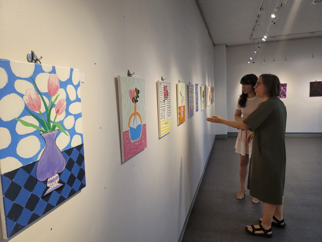 전시회에는 동아리에서 활동하는 결혼이민자들의 작품 50여 점이 전시됐다. 아크릴 그림 30점, 에코백·페인팅 티셔츠 10여 점, 머리핀·비즈 액세서리 등 각종 공예품 10여 점 등이었다.