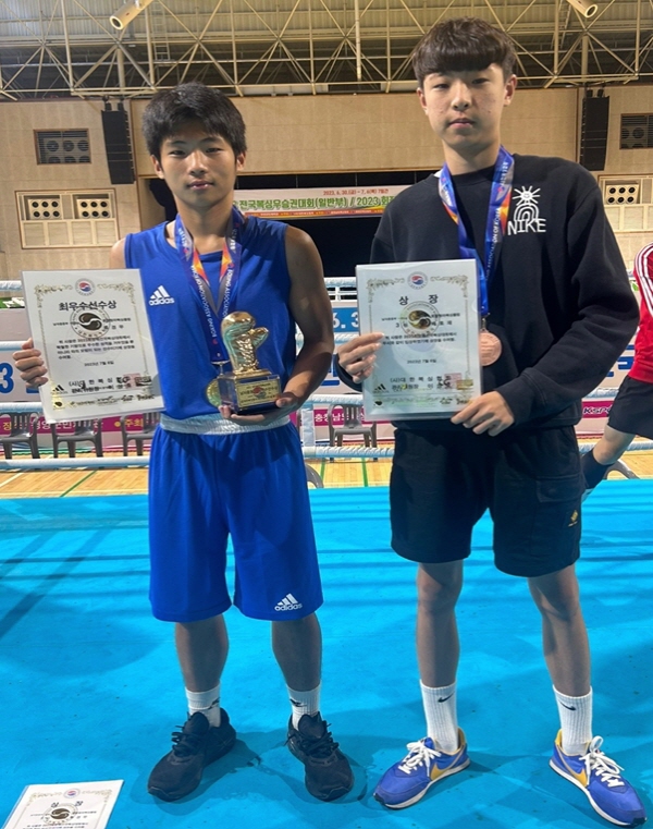 또 남자중등부 -48kg 체급에 출전한 포항공공스포츠클럽 소속 배효재(포항중2학년) 선수는 4강에서 부상으로 인해 1라운드 기권 RSC패로 아쉽게 3위를 차지했다.