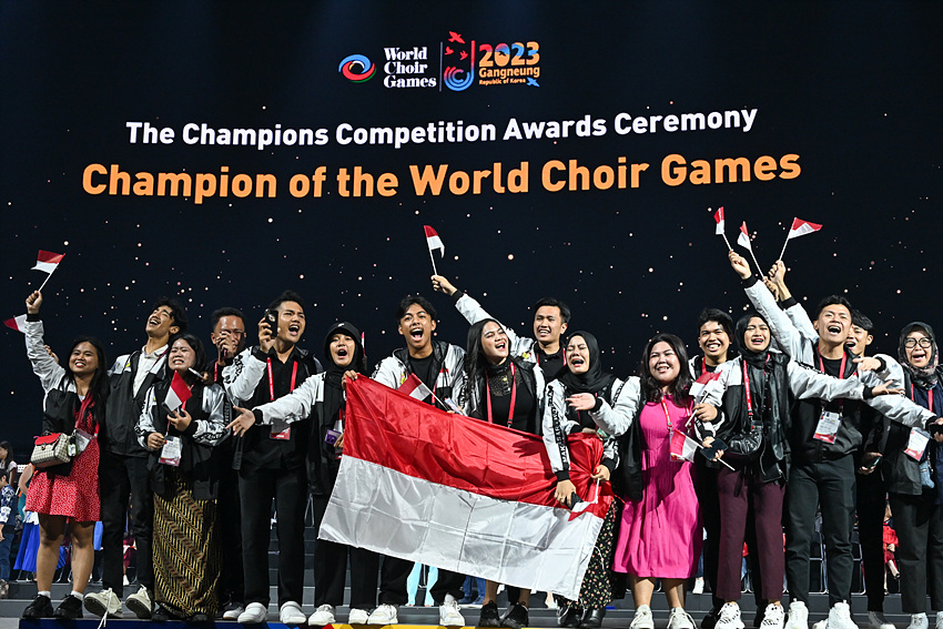 NSP통신-챔피언 경연 팝앙상블 부문에서 금메달을 수상한 인도네시아 스파클링 싱어스 합창단. (사진 = 강릉시)
