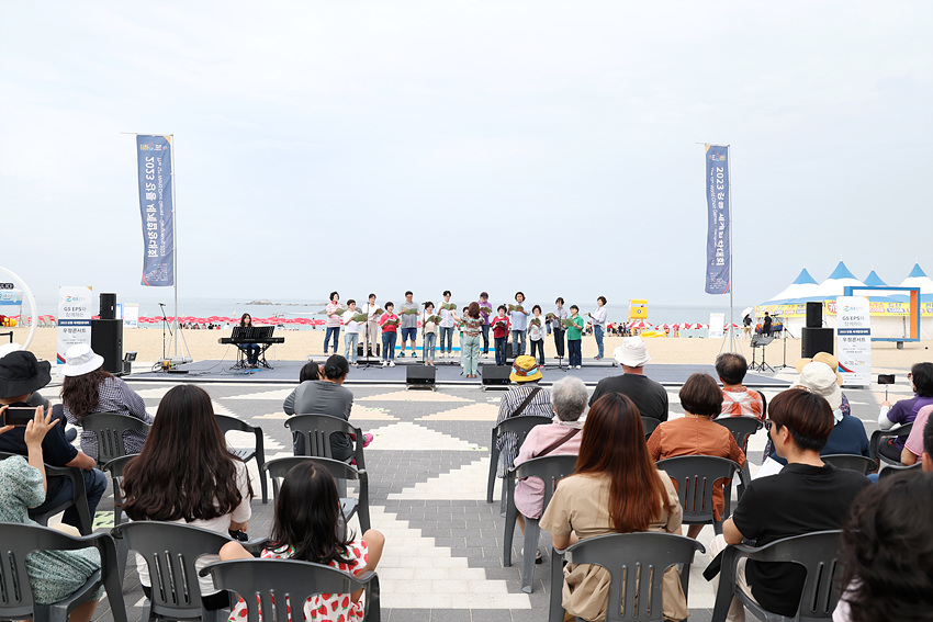 (강원=NSP통신) 조이호 기자 = 강원특별자치도 강릉시(시장 김홍규)에서 열리고 있는 2023 강릉 세계합창대회 파트1 참가자들이 경연을 마치고 경포해변 중앙광장에서 ‘GOOD TV 합창단’이 우정콘서트를 진행했다.