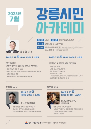 (강원=NSP통신) 조이호 기자 = 강원특별자치도 강릉시(시장 김홍규) 평생학습관에서 ‘7월 강릉시민아카데미’가 운영된다.
