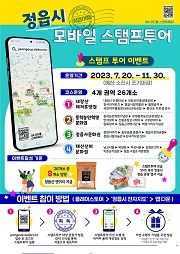 (전북=NSP통신) 김광석 기자 = 전북 정읍시가 유명 관광지는 물론 숨은 관광지를 홍보하고 ‘정읍시 스마트 관광 전자지도’ 활성화를 위해 오는 20일부터 11월까지 ‘정읍시 모바일 스탬프투어’를 운영한다.