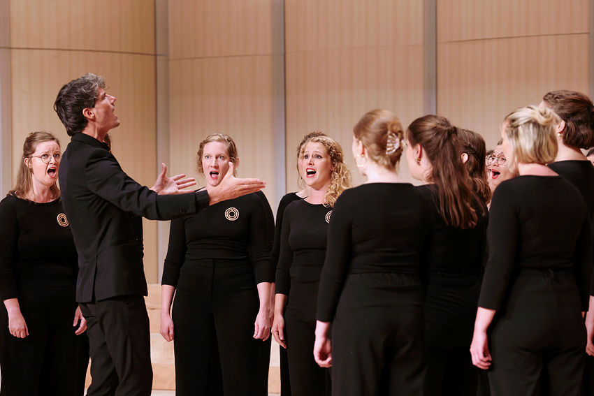 (강원=NSP통신) 조이호 기자 = 강원특별자치도 강릉시(시장 김홍규)에서 열리고 있는 ‘2023 강릉 세계합창대회’ 여성 챔버콰이어 챔피언 경연 부문에 참가한 벨기에 아마란스 합창단이 경연을 펼치고 있다.