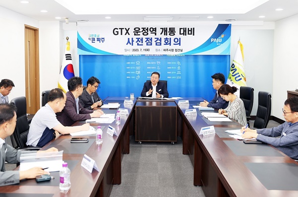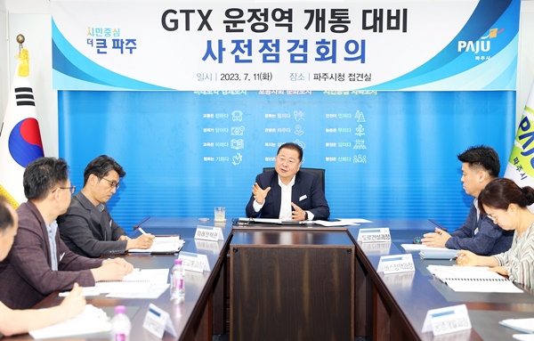 11일 ‘수도권광역급행철도(GTX) 운정역 개통 대비 사전 점검 회의는 2024년 하반기 개통 예정인 수도권광역급행철도(GTX) 시대를 준비하기 위해 김경일 파주시장이 직접 담당 부서와 소통하며 주재했다.