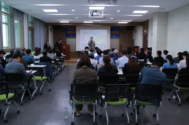 NSP통신-12일 국민건강보험공단 안산지사 대강당에서 김철민 국회의원이 성포광장 재정비 주민의견수렴 2차 공청회를 진행하고 있다. (사진 = 의원실)