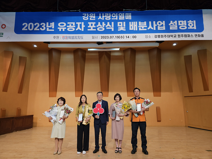 (강원=NSP통신) 조이호 기자 = 강원특별자치도 소방본부 인제소방서가 19일 오후 2시 강릉원주대학교에서 열린 ‘2023년 사랑의열매 나눔실천 유공 시상식’에서 사회복지공동모금회장 표창을 수상했다.