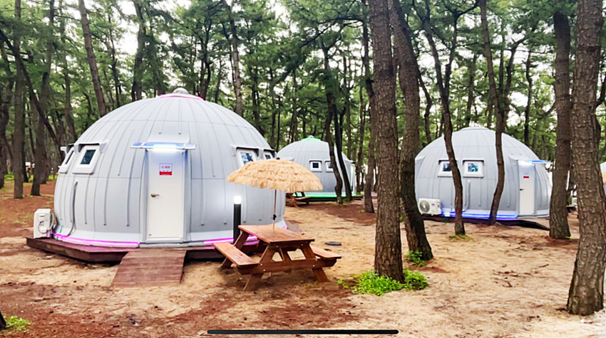글램핑장은 기존의 텐트형 글램핑장과는 달리 돔하우스 형태로 설계돼 튼튼하고 공간적으로 풍성한 경험을 제공해 남녀노소 누구나 캠핑을 더욱 쾌적하고 즐길 수 있도록 도와준다.