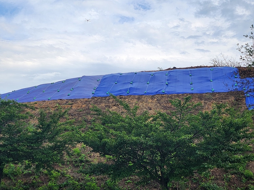 NSP통신-경포 산불피해지 방수포 작업 모습. (사진 = 강릉시)
