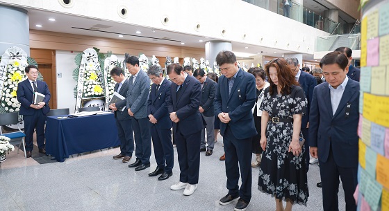 서 교육감은 이날 전략회의에 앞서 본청, 지원청, 직속기관 간부들과 함께 본청 1층 로비에 설치된 합동분향소에서 고인을 추모했다.
