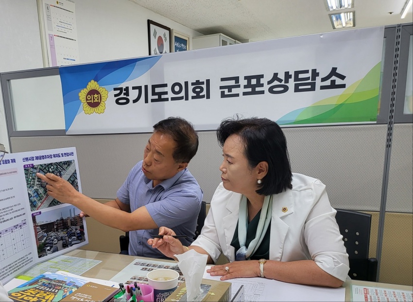 (경기=NSP통신) 김병관 기자 = 정윤경 경기도의원은 25일 도의회 군포상담소에서 김상만 군포시청 차량관리과장, 황성희 주차정책팀장 등이 참석한 가운데 정담회를 열고 산본시장 제1공영주차장 유료화 사업에 대해 논의했다.