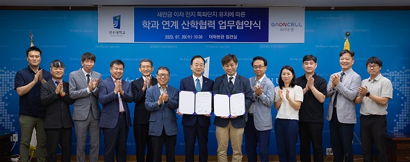 이번 협약은 전주대의 신소재화학공학과, 전기전자공학과, 미래에너지전공 등이 가온셀과 유기적인 협조체제를 구축하며 이차 전지 사업화 역량을 강화하고 대학의 실습과 취업률을 높이고자 마련됐다.
