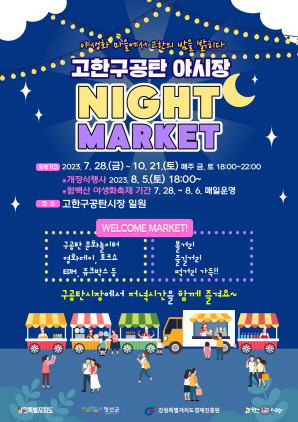 고한구공탄시장 상인회(회장 유미자)에서 주관하는 주말야시장은 28일부터 8월 4일까지 시범운영을 마치고 8월 5일부터 10월 21일까지 매주 금·토요일 주말 야시장을 정식 운영한다.