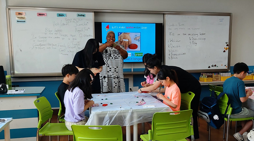 5학년 학생은 “고등학교 언니, 오빠들이 와서 같이 영어 공부도 도와주고 비누를 만들 때 영어로 설명해 줘서 잘 만들 수 있었다”고 소감을 말했다.