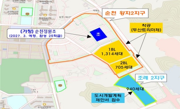 순천정원초 학교 신설안은 순천 왕지2지구 및 조례2지구 2959세대 도시개발 사업에 따라 유입되는 학생 적정 배치를 위해 추진됐다.