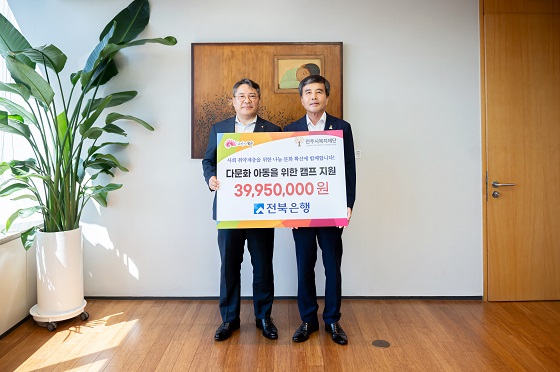 (전북=NSP통신) 김광석 기자 = JB금융그룹 전북은행(은행장 백종일)은 전북은행 본점에서 2023 다문화가정 아동을 위한 캠프 지원 후원금 전달식을 실시했다고 9일 밝혔다.