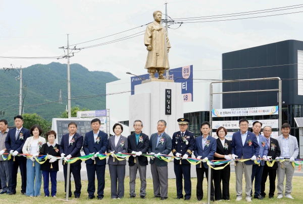 (전남=NSP통신) 김용재 기자 = 강진군은 ‘모란이 피기까지는’으로 유명한 강진이 낳은 한국 최고의 서정시인 영랑 김윤식의 동상을 지난 9일 기존 영랑공원에서 동성사거리 회전교차로로 이전 설치하고 기념식을 가졌다.