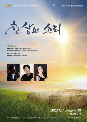 ‘천상의 소리’를 부제로 열리는 이번 정기연주회는 정주영 상임지휘자의 지휘 아래 ‘치머만 오보에 협주곡(한국 초연)’과 ‘말러 교향곡 4번’이 연주된다.