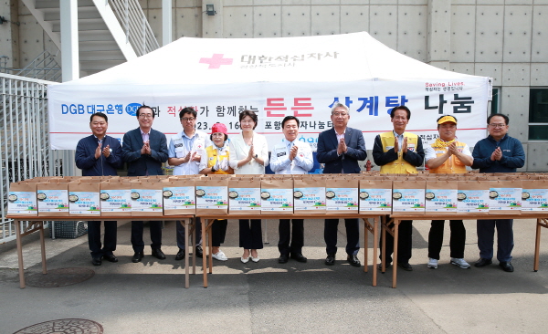 (대구=NSP통신) 최병수 기자 = DGB대구은행(139130)은 16일 대한적십자사 경북지사(회장 김재왕)와 함께 포항시 남구 포항적십자나눔터에서 ‘든든 삼계탕 나눔’ 행사를 실시했다.