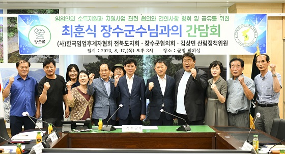 이날 간담회는 임업 후계자 지원 및 양성방안 등을 논의하고 소통하기 위해 마련된 것으로 정순호 장수군 임업 후계자협의회장, 김봉운 전북도지회장, 김상민 더불어민주당 산림청 정책자문위원 등 10여 명이 참석한 가운데 이뤄졌다.