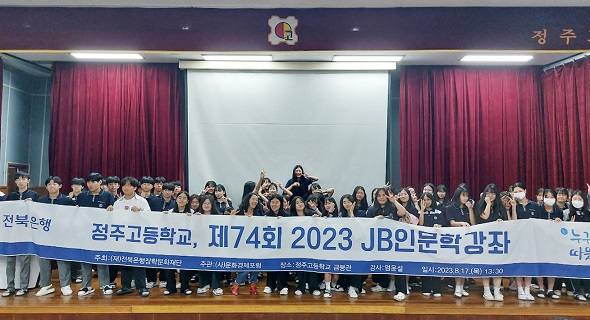 (전북=NSP통신) 김광석 기자 = JB금융그룹 전북은행(은행장 백종일) 후원으로 운영되는 전북은행장학문화재단(이사장 김영구)은 부안고등학교와 정읍 정주고등학교에서 ‘2023 JB인문학 강좌’를 개최했다고 21일 밝혔다.