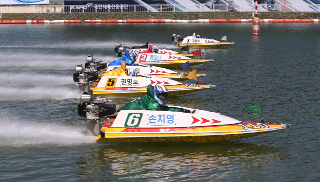 NSP통신-미사리경정장에서 손지영 선수가 가장 빠른 스타트로 경주를 출발하고 있다. (사진 = 국민체육진흥공단)