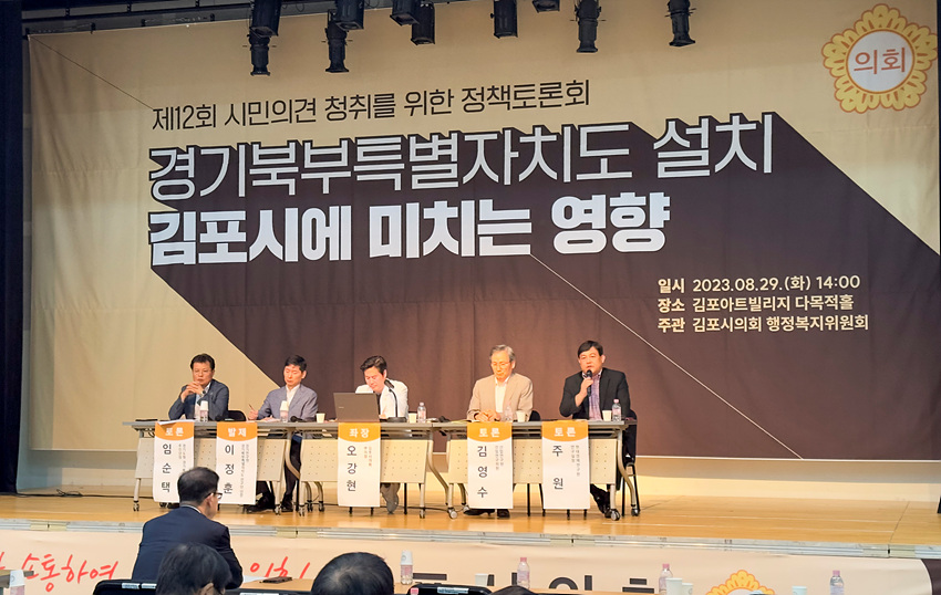 (경기=NSP통신) 조이호 기자 = 경기 김포시의회(의장 김인수) 행정복지위원회(위원장 유영숙)가 29일 김포아트빌리지 다목적홀에서 ‘경기북부특별자치도 설치’, 김포시에 미치는 영향에 관한 정책토론회를 개최했다.