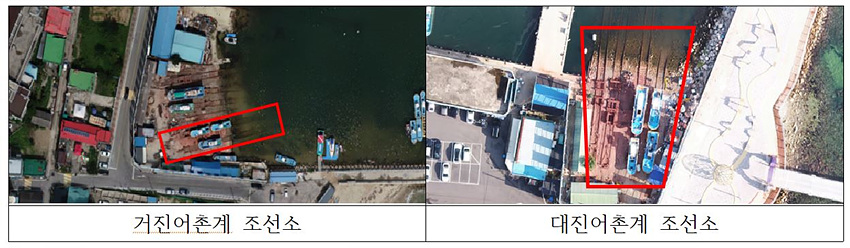 거진읍 거진리 일원에 있는 거진 어촌계 조선소는 3억 7500만원의 사업비로 선가대 연장 및 보수(2조), 연장구역 토목공사를 진행하며 현내면 대진리 일원에 있는 대진항 어선수리소는 6억원의 사업비로 선가대 개보수(2조) 및 수리소 사무실을 정비할 계획이다.