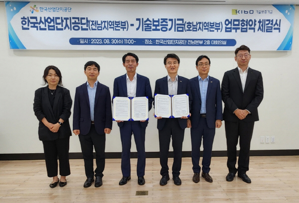 (전남=NSP통신) 서순곤 기자 = 한국산업단지공단 전남지역본부(본부장 염동일)는 30일 기술보증기금 호남지역본부(본부장 김성태)와 상호협력을 위한 업무협약을 체결했다.