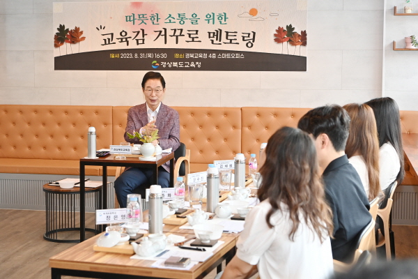 (경북=NSP통신) 조인호 기자 = 경상북도교육청(교육감 임종식)은 본청 스마트오피스에서 공직사회 세대 간 진정성 있는 소통을 위해 ‘교육감 거꾸로 멘토링’ 을 실시했다고 1일 밝혔다.