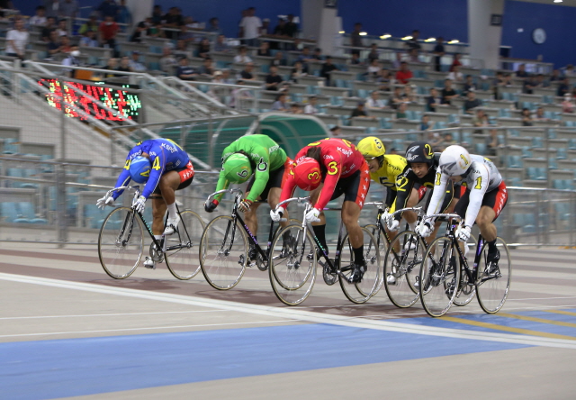 NSP통신-광명스피돔에서 출전 선수들이 결승선을 앞두고 경합을 벌이고 있다. (사진 = 국민체육진흥공단)