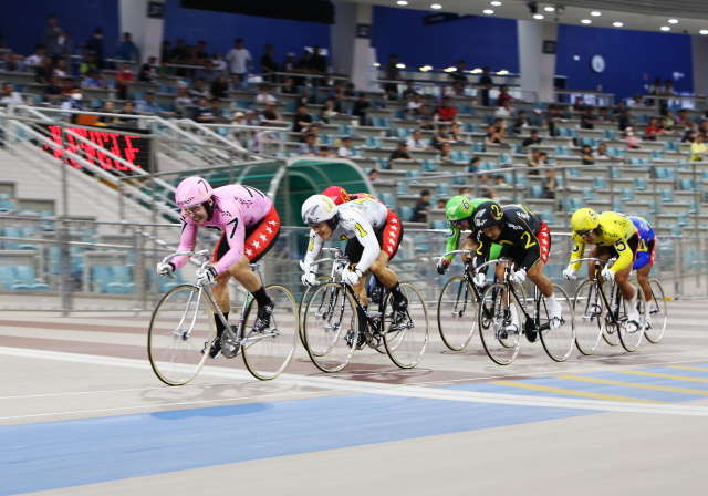NSP통신-광명스피돔에서 출전 선수들이 앞에 나서기 위해 경합을 벌이고 있다. (사진 = 국민체육진흥공단)