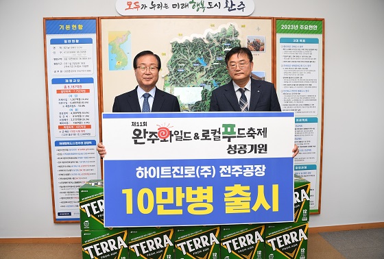 유희태 완주군수는 “하이트진로는 우리 지역의 대표 향토기업으로 완주군의 대표축제인 완주와일드&로컬푸드축제 성공을 기원하기 위해 홍보 도움을 주셔서 너무 감사하다”며 “완주군 역시 하이트진로와 함께 대한민국 1등 경제도시로 만들어가도록 하겠다”고 말했다.
