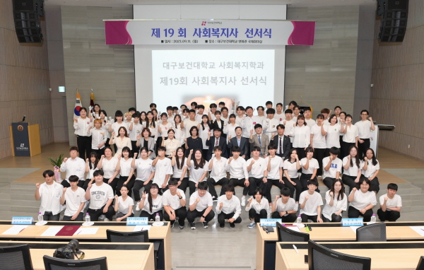 이날 선서식에는 대구시 사회복지사협회 박보리 회장을 비롯해 재학생, 교수, 동문 선배 등 120여 명이 참석했다.