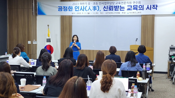 (경북=NSP통신) 조인호 기자 = 경상북도교육청(교육감 임종식)은 지난 11일부터 12일까지 2일간 김천 로제니아호텔에서 교육지원청, 직속기관 유·초등 인사업무담당 교육전문직원 60명을 대상으로 역량 강화 연수를 실시했다.