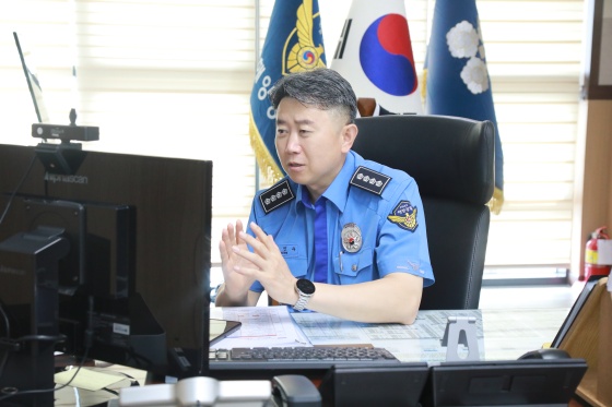 장진수 평택해양경찰서장이 3층 서장실에서 화상회의를 하고 있다. (사진 = 평택해양경찰서)