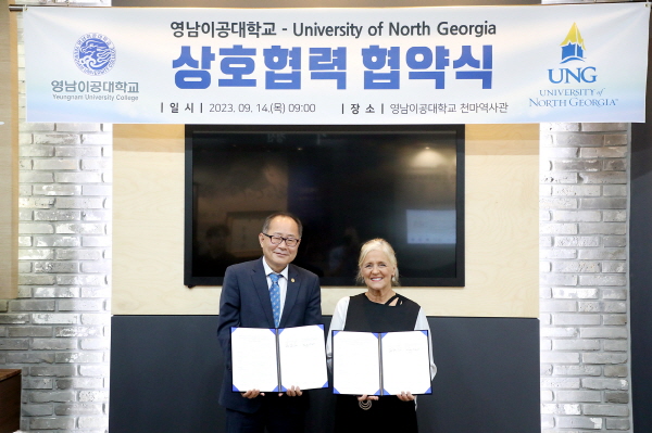 (대구=NSP통신) 최병수 기자 = 영남이공대학교(총장 이재용)는 지난 14일 천마스퀘어 2층 역사관에서 미국 노스조지아대학교(University of North Georgia)와 업무협약을 체결했다.