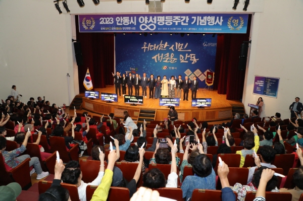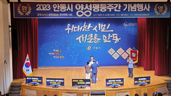 (경북=NSP통신) 김오현 기자 = 안동시 2023년 양성평등주간 기념행사가 ‘함께 일하고 함께 돌보는 양성평등사회’라는 슬로건 으로 14일 시청(대동관 낙동홀)에서 열렸다.