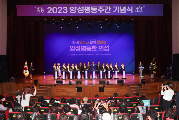 (경북=NSP통신) 조인호 기자 = 의성군(군수 김주수)은 지난 15일 양성평등주간(9. 1~ 9. 7)을 맞아 ‘함께 일하고 함께 돌보는 양성평등한 의성군’ 이라는 슬로건으로 2023 양성평등주간 기념식을 개최했다.