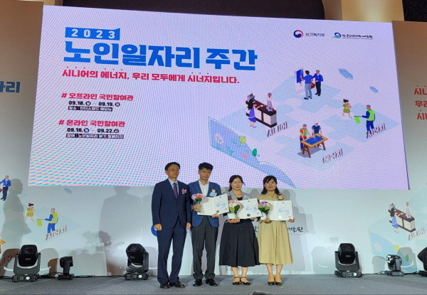 (경북=NSP통신) 조인호 기자 = 구미시가 18일 서울 성동구 보테가마지오 호텔에서 개최된 노인일자리 주간 기념식에서 2023년 보건복지부 및 한국노인인력개발원이 실시한 노인일자리 및 사회활동지원사업 시·군·구 평가에서 ‘대상’ 에 선정돼 보건복지부 장관상을 받았다.