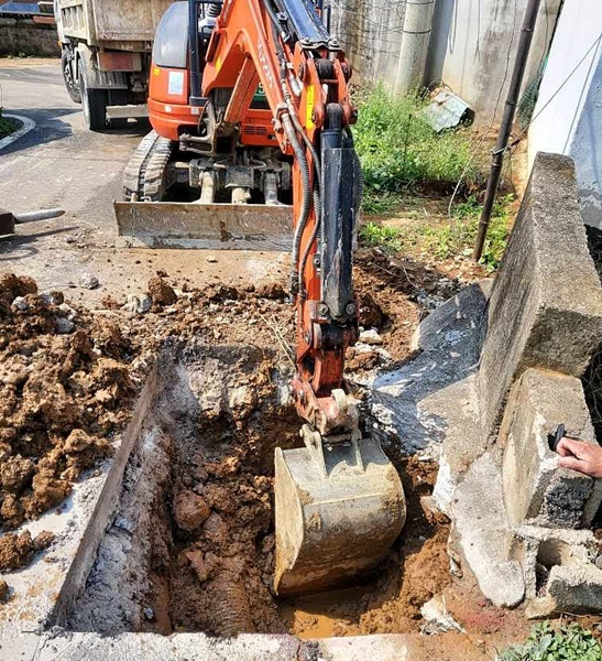 누수관 정비를 장비가 작업을하고 있다. (사진 = 문경시.)