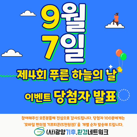'제4회 푸른 하늘의 날’ 온라인 이벤트 당첨자