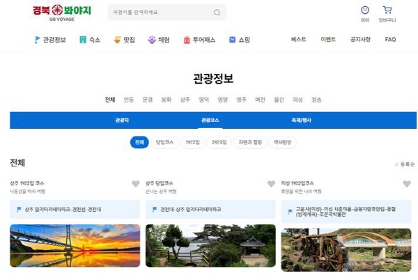(경북=NSP통신) 김오현 기자 = 안동시와 한국정신문화재단은 안동을 중심으로 한 경북 북부지역 11개 시·군의 관광지, 숙박, 음식, 카페, 체험 등에 대한 정보 검색과 예약 등을 원스톱으로 시행할 수 있는 온라인 여행 플랫폼(OTA-Online Travel Agency) ‘경북 봐야지’를 오픈했다.