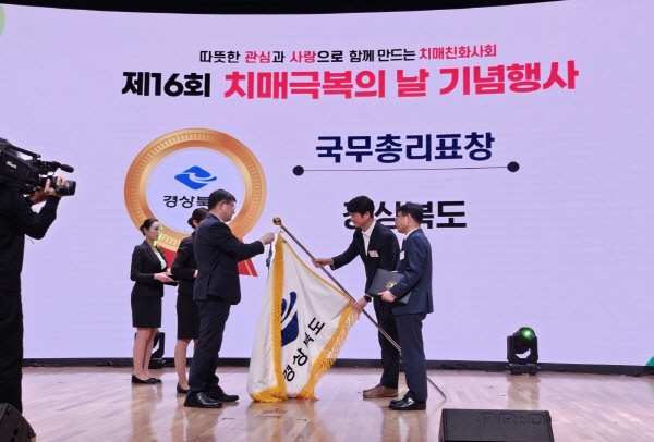 경상북도는 지난 21일 보건복지부 주관으로 서울 대한상공회의소에서 개최된 ‘제16회 치매극복의 날 기념식’ 에서 국무총리 표창을 수상했다고 밝혔다. (사진 = 경상북도)