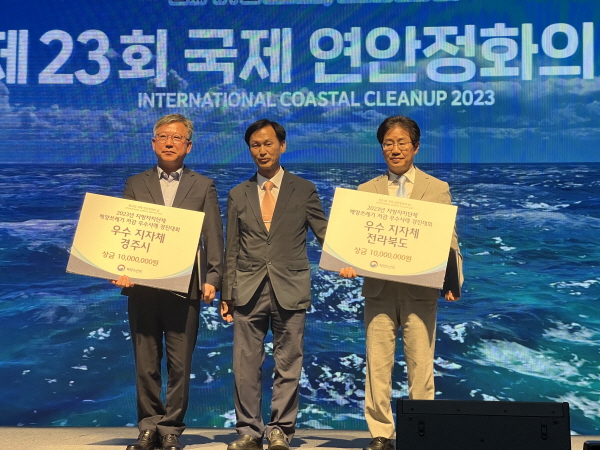 NSP통신-경주시는 지난 21일 충남 보령 머드테마파크 컨벤션에서 개최된 제23회 국제 연안정화의 날 행사에서 2023년도 해양쓰레기 저감 우수사례 경진대회 우수상을 수상했다. (사진 = 경주시)