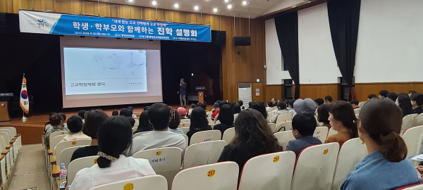 ‘내게 맞는 고교 선택법과 고교학점제’ 라는 주제로 열린 이번 설명회는 관내 초등 고학년과 중학생, 학부모를 대상으로 고교학점제 등 변화하는 입시제도를 구체적으로 안내하고 그에 맞는 진학 설계를 구체적으로 제시해 학생과 학부모들의 큰 호응을 얻었다.
