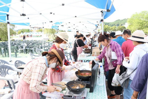 봉화송이한약우축제 프로그램중 하나인 가족이 함께하는 다같이 송송 요리대회에 6개 팀이 참여해 봉화 한약우, 봉화 은어 등을 활용한 요리를 선보였다. (사진 = 김오현기자)