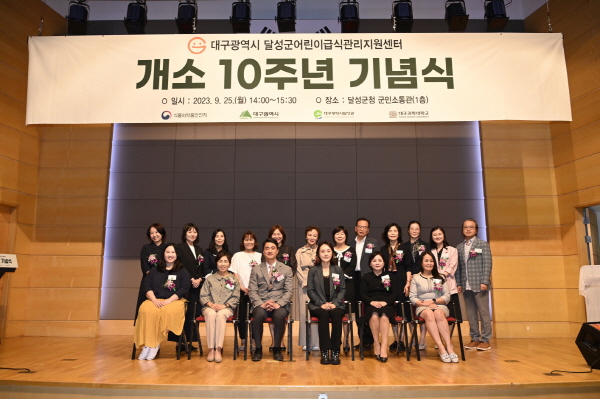 (대구=NSP통신) 최병수 기자 = 대구과학대학교(총장 박지은) 식품영양조리학부에서 위탁 운영하고 있는 달성군 어린이급식관리지원센터(센터장 김정미)는 지난 25일 대구시 달성군청 군민소통관에서 개소 10주년 기념식을 가졌다.