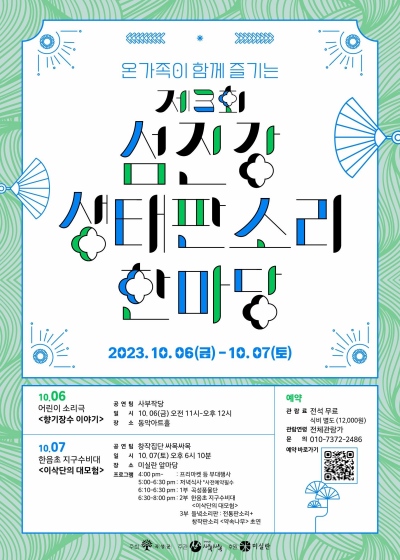 ‘제3회 섬진강 생태 판소리 한마당’은 오는 6일에는 오전 11시, 10월 7일에는 오후 6시 10분에 진행된다.