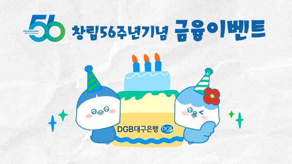 ‘DGB대구은행 생일의 달’을 맞아 진행되는 환전 이벤트의 경우 10월 한 달 간 창립 56주년에서 착안해 ‘56불 이상’ 환전한 고객을 대상으로 ‘함께한 56년, 함께할 100년’ 이벤트를 진행한다. 추첨을 통해 백화점 상품권, DGB대구은행 캐릭터 굿즈 등을 제공하며 특히 10월 생일 고객에게 케이크를 특별 추첨 증정해 10월 생일을 맞는 당행과 고객이 함께 축하하는 마음을 나눈다는 계획이다.